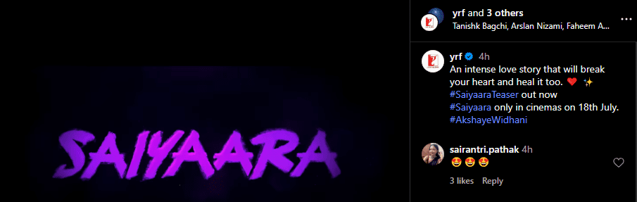 सैयारा सिर्फ एक प्रेम कहानी नहीं, बल्कि जुनून, दर्द, खुशी और टूटे दिल की यात्रा है। यह फिल्म ना केवल अहान पांडे के करियर की शुरुआत का प्रतीक है, बल्कि अनीत पड्डा के अभिनय के नए पहलू भी सामने लाती है। दोनों की केमिस्ट्री और मोहित सूरी का भावनात्मक निर्देशन दर्शकों को एक इमोशनल रोलरकोस्टर राइड पर ले जाने का वादा करता है।
