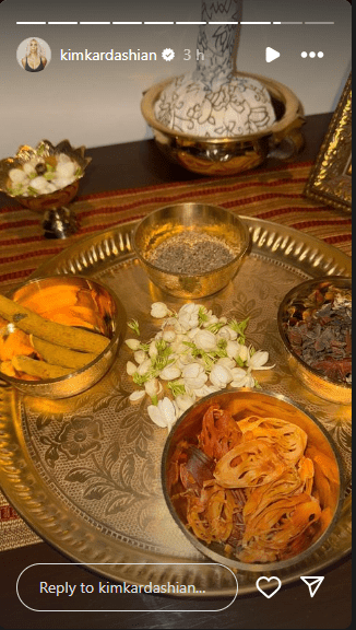 किम की पहली स्टोरी में भारतीय पपराज़ी थे। जब पपराज़ी उनकी कार के चारों ओर जमा हो गए, तो किम ने उन्हें करीब से देखा और “हाय (भारत)” लिखा। उन्होंने एक वीडियो भी शेयर किया, जिसमें उनका और ख्लो का भारतीय शैली में स्वागत हो रहा था।