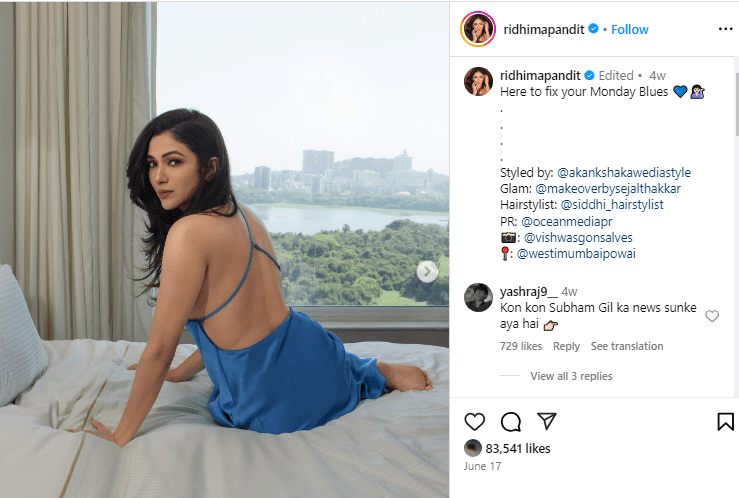 इस प्रकार, रिधिमा ने अपने रिश्ते की स्थिति को स्पष्ट किया और अपने करियर में अनुभव किए गए कठिन समय को साझा किया।