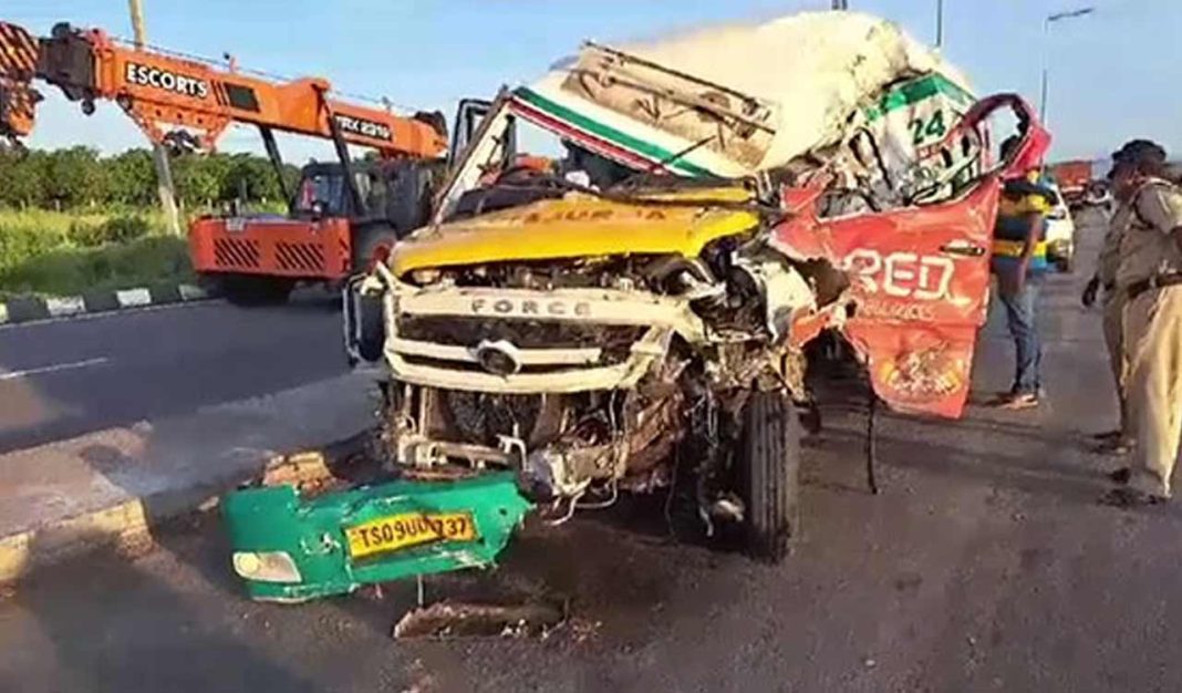 सूत्रों के अनुसार, तिरुपति से मदुरै जा रही एक प्राइवेट ट्रैवल्स की बस ने नियंत्रण खो दिया और सड़क के किनारे खड़े एक टिपर से जा टकराई। टक्कर इतनी जोरदार थी कि बस लगभग 20 फीट तक फिसल गई और सड़क निर्माण स्थल पर एक बिजली के खंभे से जा टकराई। खंभा बस के अंदर घुस गया, जिससे चार यात्रियों की मौके पर ही मौत हो गई।